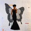 Black Butterfly is an original art quilt by Aisha Lumumba. It features a woman dressed in black with large wings. It features decorative beading as necklace and earrings . Great for wall decor.