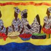 Gumbo Ladies 4: Wit Everythin is an original art quilt by Aisha Lumumba. It is a conversation between four women as they gather ingredients to make gumbo. Beautiful appliqued vegetables and lobster fill the baskets. Exquisite applique and hand quilting on this quilt as well as beaded embellishments.
