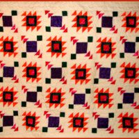 Machine pieced and professionally machine quilted. The binding is sewn to the front by machine and hand stitched to the back of the quilt. It includes a sleeve for hanging on the back. Made in a smoke free pet free environment.