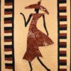 Steppin’ Out #11 is an original art quilt by Aisha Lumumba. Steppin’ Out #11 is a lovely quilt with a piano key border. It is a woman wearing a brown print dress ready to step out. Frames beautifully and makes a great gift.