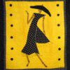 Steppin’ Out #9 is an original art quilt by Aisha Lumumba. This quilt is a lovely lady steppin’ out for the evening. It has a yellow/gold background with a lady wearing a black and white polka dot dress. It has been loved and admired by many. Great gift.