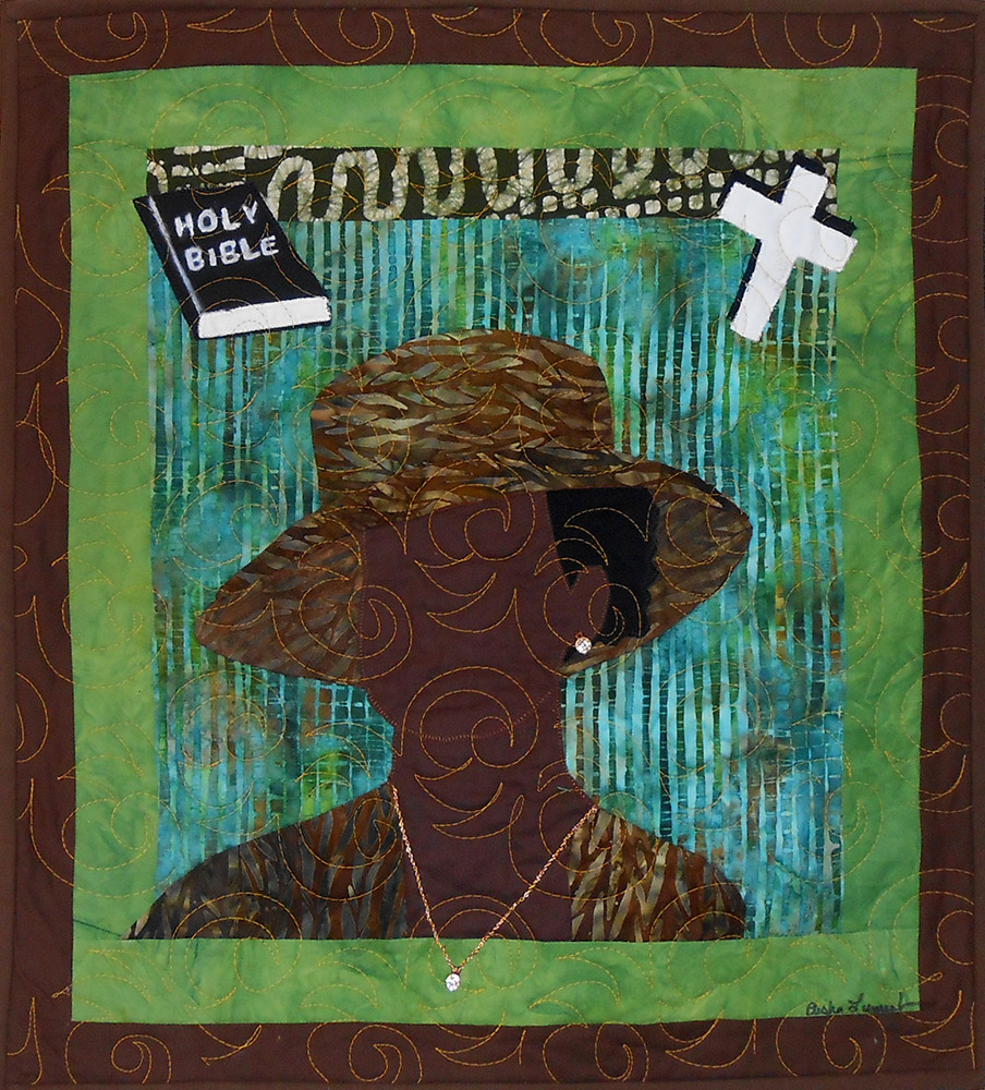 This quilt is a tribute to my cousin Vendya Lewis Little. She was a fun spirit that loved to have a good time. It is machine appliqued and bead embellished. This quilt is number five in the series.